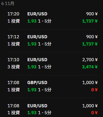 17:12以降のトレードで、金額 900円だったのが、惜しいところです。(1000円に替えることを忘れていました)